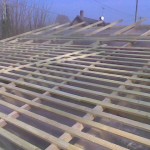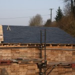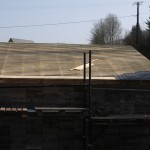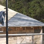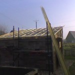 Our planning permission dictates that the roofing material for the shed be the same as that for the house, or black steel sheeting. Since we are planning to put a slate roof on the house, and this would involve a certain amount of learning, we decided to replace the existing shed roof with slates by way of practising the art of slating.